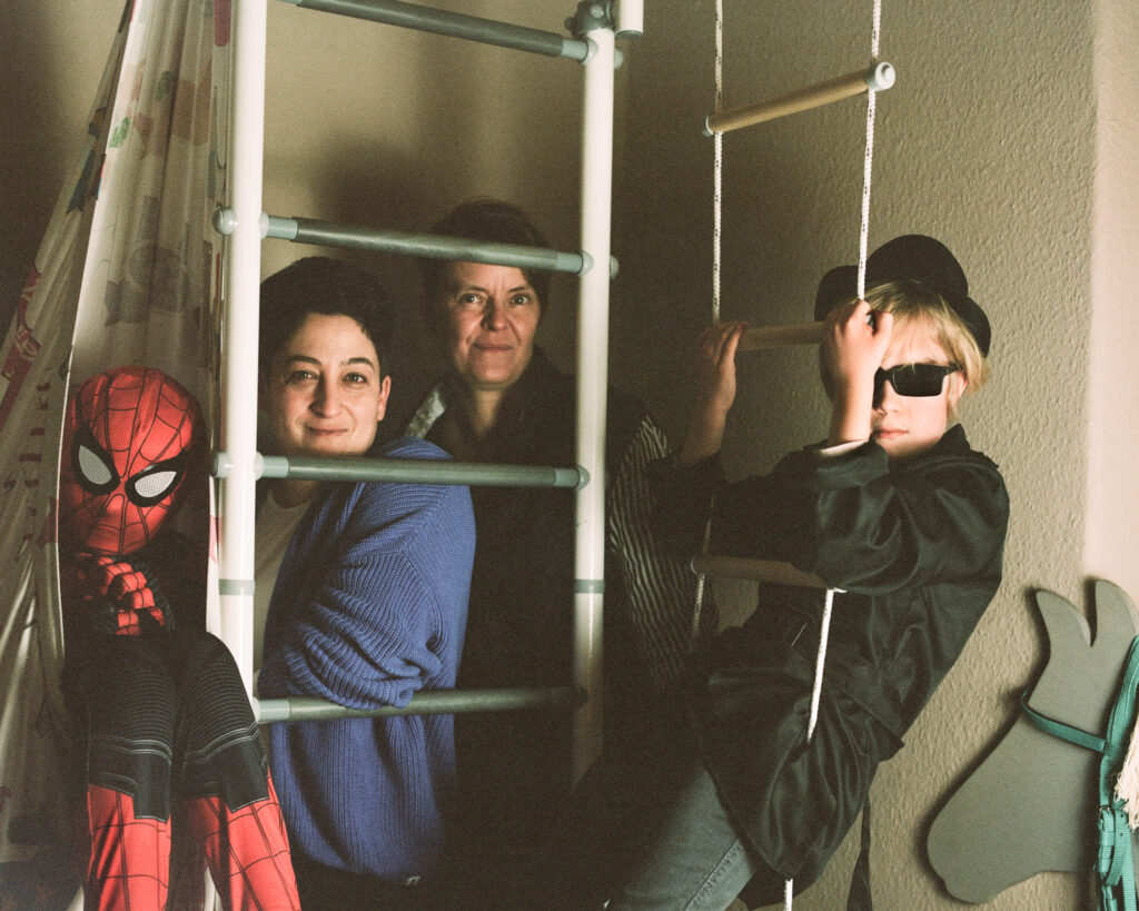 Lena Maria Loose porträtiert in Kernfamilie Elternschaftskonstellationen abseits der gesellschaftlichen Norm. Mit ihren Bildern möchte sie die Vielseitigkeit von familiären Lebensweisen zeigen und Fragen nach reproduktiver Gerechtigkeit, sozialer Elternschaft, Empowerment, gesellschaftlichen Bedingungen und dem Selbstverständnis von Familie aufwerfen.